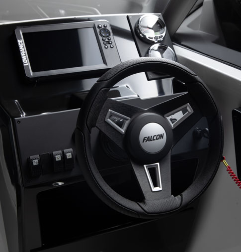 Falcon BRs6 erbjuder en välbalanserad båtupplevelse, oavsett om planerna gäller en längre dagsutflykt med familjen eller en spontan kvällstur med vänner. Den L-formade soffan placerad i aktern utökar det redan behagligt rymliga passagerarutrymmet ytterligare. Lättmanövrerad och till och med förvånansvärt pigg i gången gör BRs6 dig till en trygg och skicklig skeppare, vars passagerare enkelt kan njuta av allt det som en avslappnad och bekymmersfri båtupplevelse består av.
