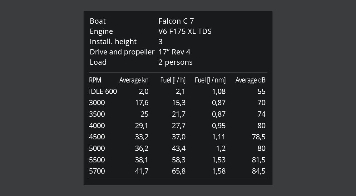 Det är dags att omdefiniera begreppet mångsidig kvalitetsbåt – Falcon C 7 är ett utmärkt val för såväl fisketurer som dagsutflykter. Förutom en mjuk känsla vid gång erbjuder den välgenomtänkt standardutrustning och beredskap för tilläggsutrustning. Den högklassiga ljudisoleringen i skrovet och hytten garanterar en mycket behaglig ljudnivå även vid hög fart, och tack vare den förstärkta kölen rör sig C 7 både smidigt och stabilt – såväl i utmanande väderförhållanden som på trailer.